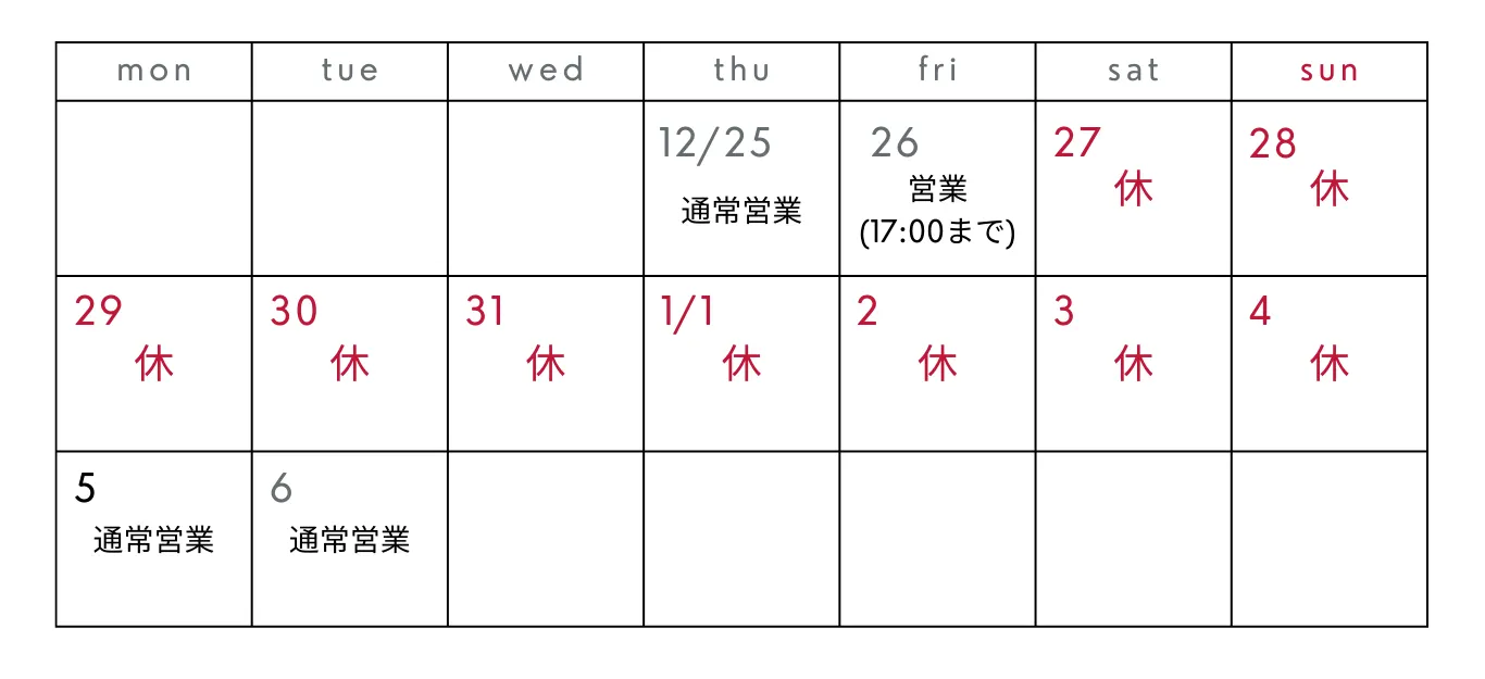 【年末年始の営業について】