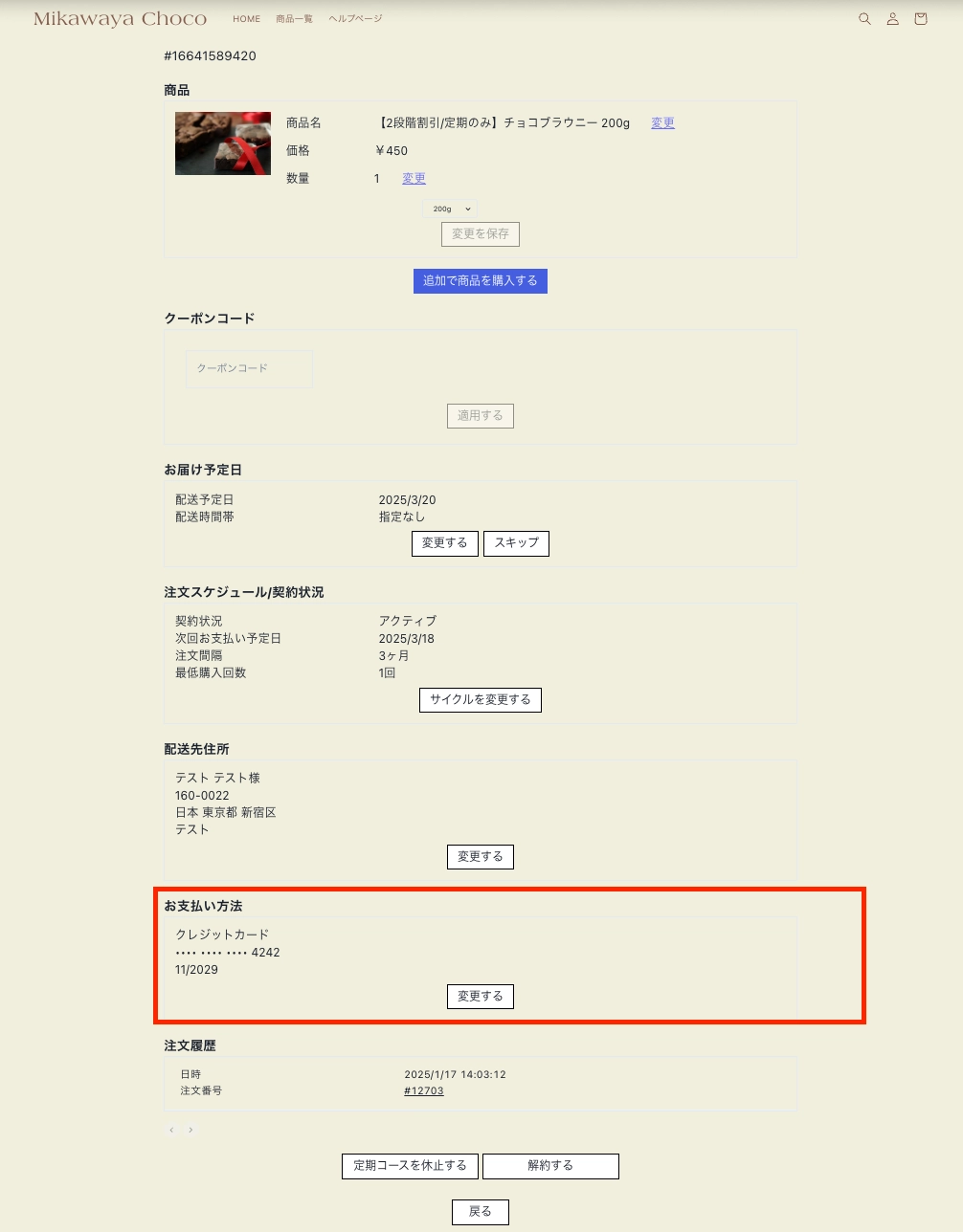 Shopify Payments決済の場合は、アプリ管理画面やマイページよりお手続き可能です。