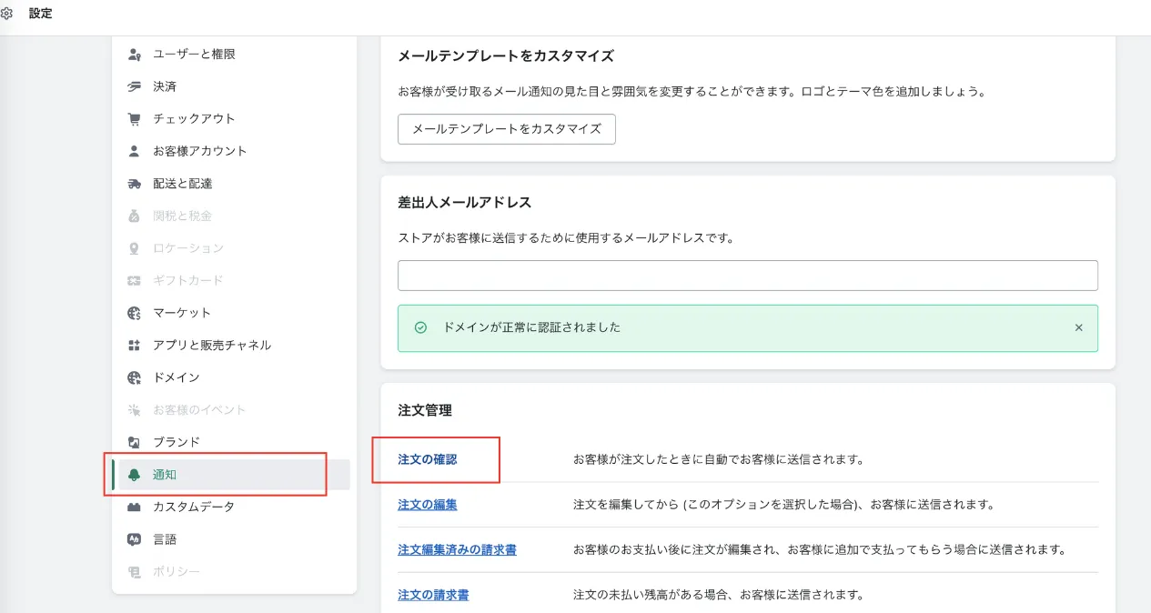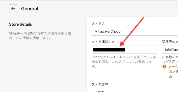 「ストアへメールで通知を送信する」では、Shopifyに登録しているストア連絡先メールアドレスに変更通知が届きます(ライトプラン)