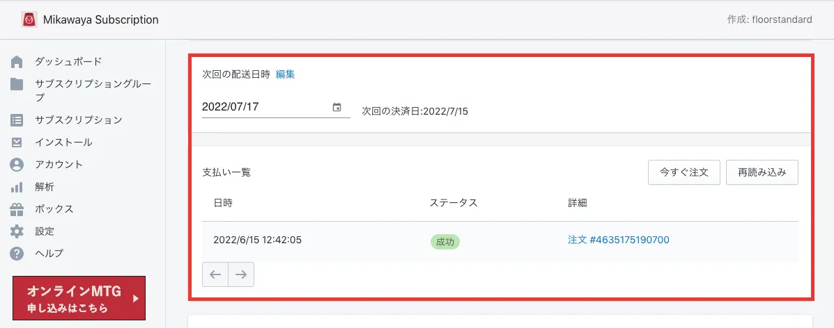 Mikawaya>サブスクリプショングループ「注文間隔=2週間(14日)」の場合