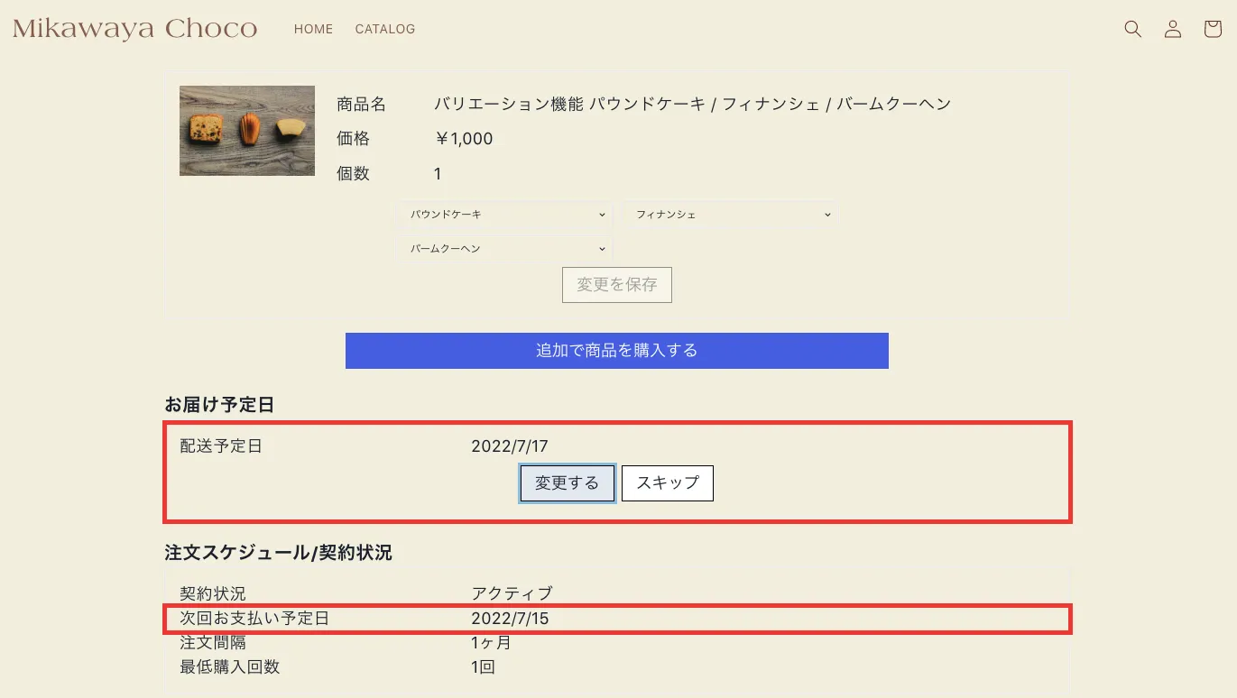 ※次回配送日を変更すると、次回注文日(次回お支払い予定日)も連動されます