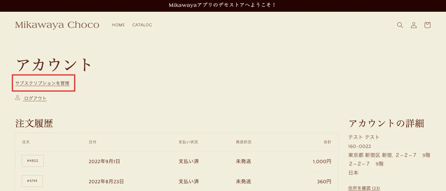※「サブスクリプションを管理」というテキストは、Shopifyのコード編集画面から変更できます