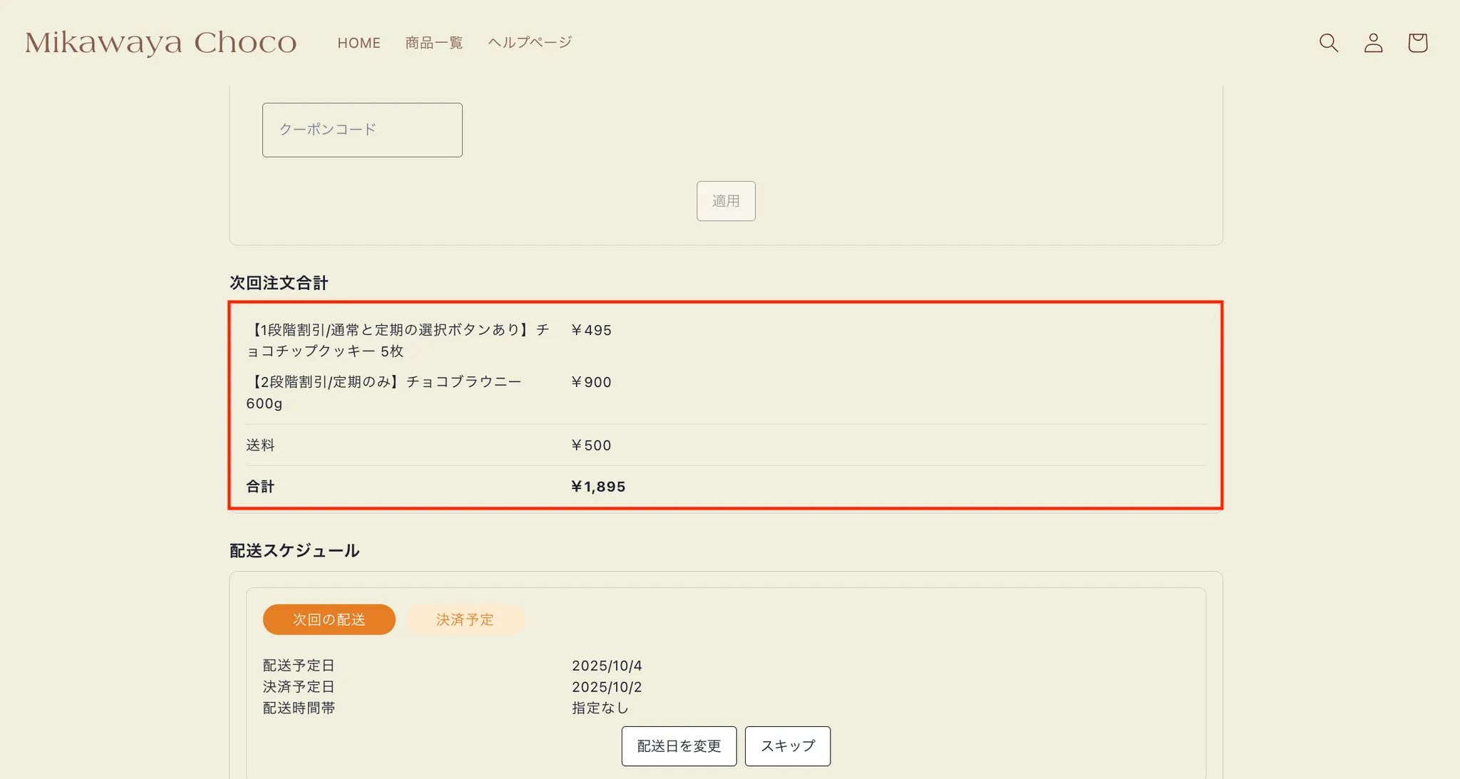 サブスクリプションマイページ内に「次回注文合計」という項目が表示されるようになりました