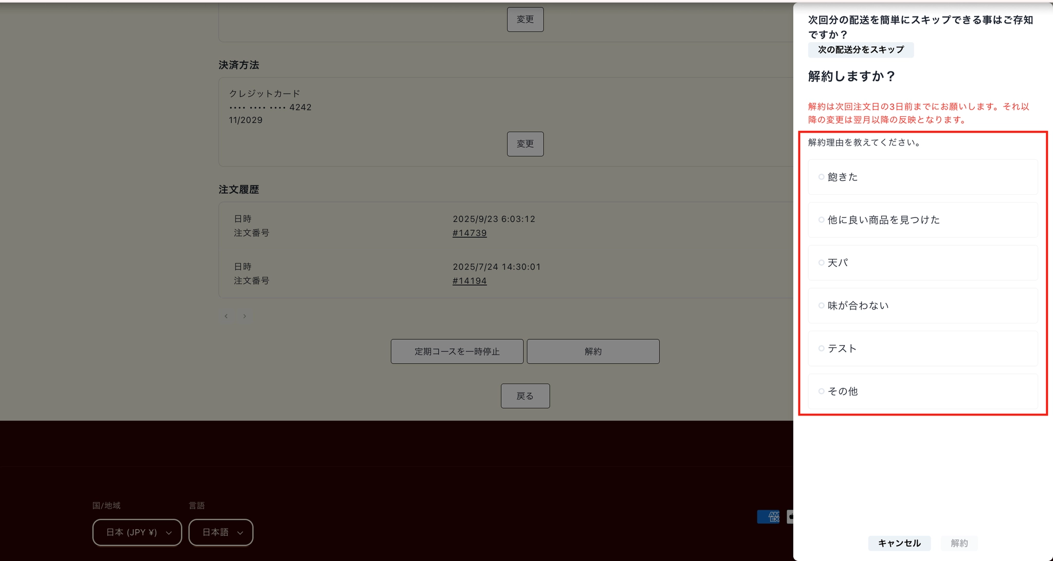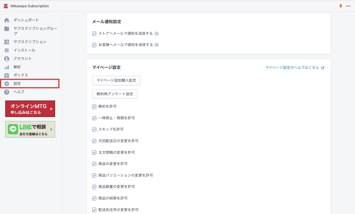 マイページ上で商品の直前解約や長期期間の間隔変更を防ぐために、期限設定を行うことができます。
