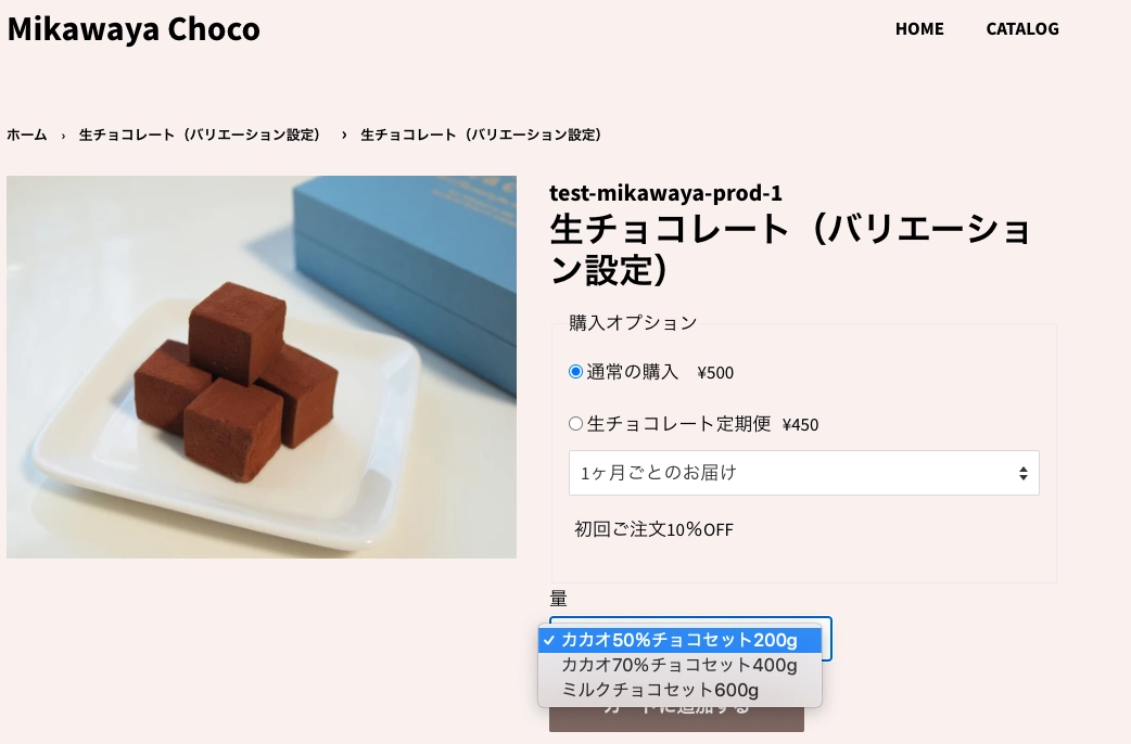 商品単位でのサブスクリプショングループ設定だけではなく、商品のバリエーション別にサブスクリプショングループ設定をする事が可能です。