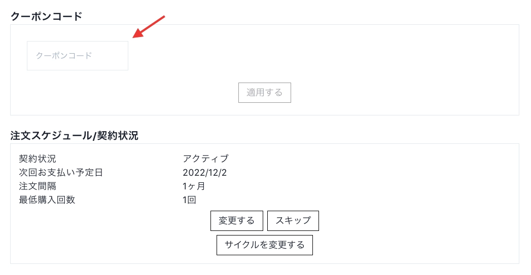 サブスクリプションマイページ 定期便2回目以降クーポン機能