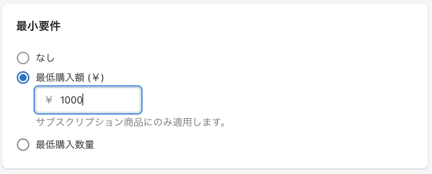 最低購入金額:画像では1000円以上の購入で30%OFFクーポンが使えるように設定しました