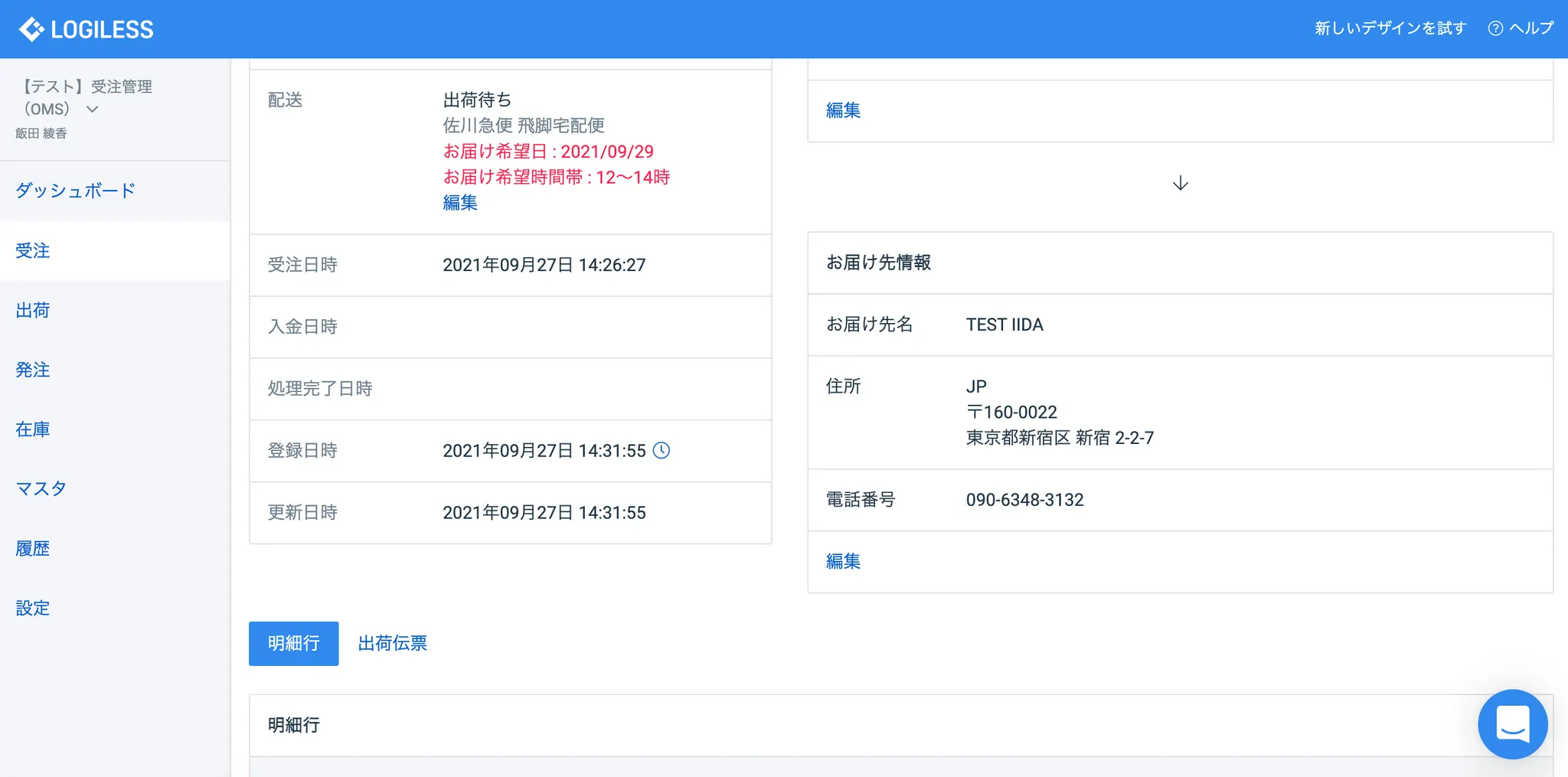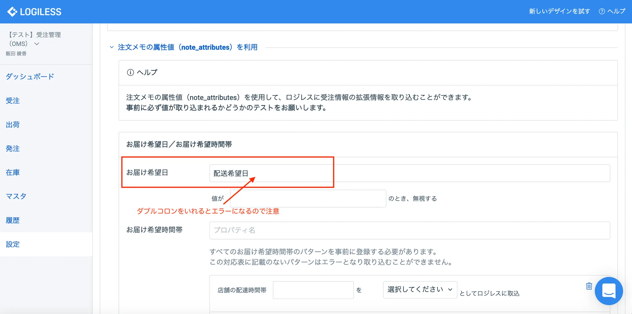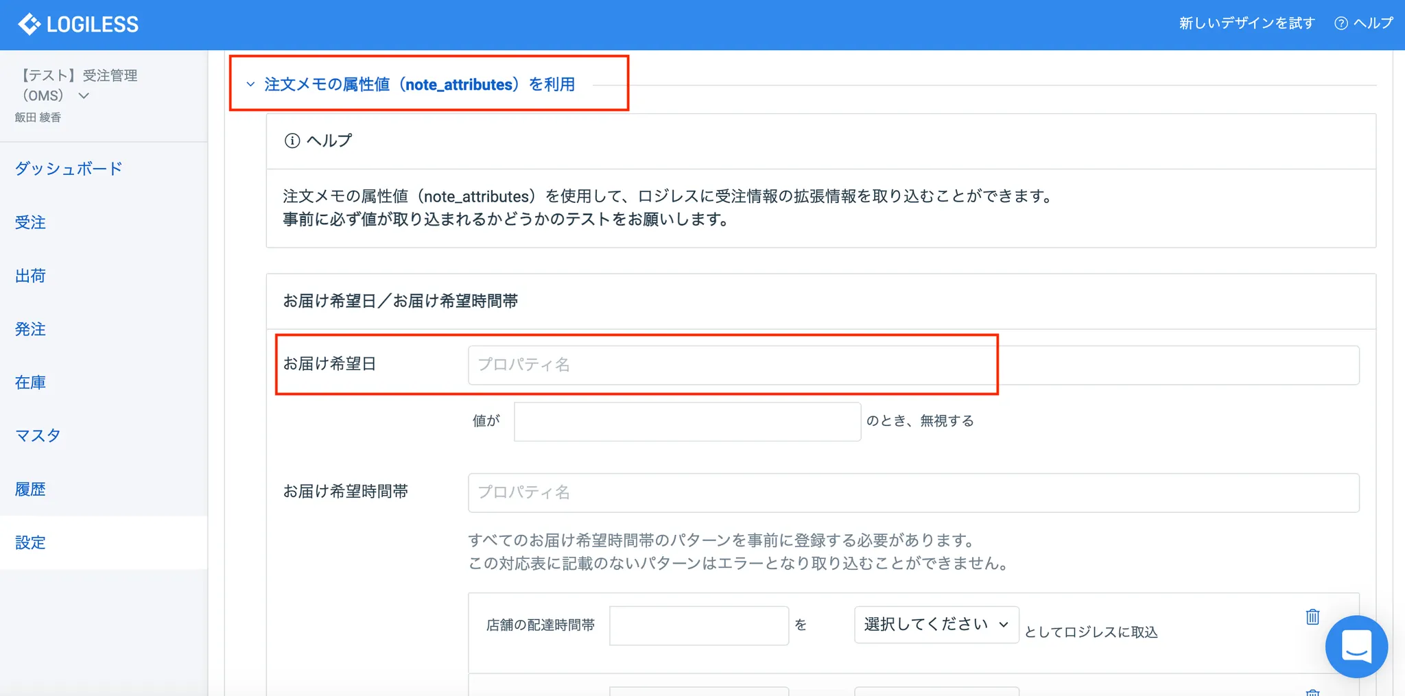 以下配送日指定・時間指定をロジレスに取り込みたい場合