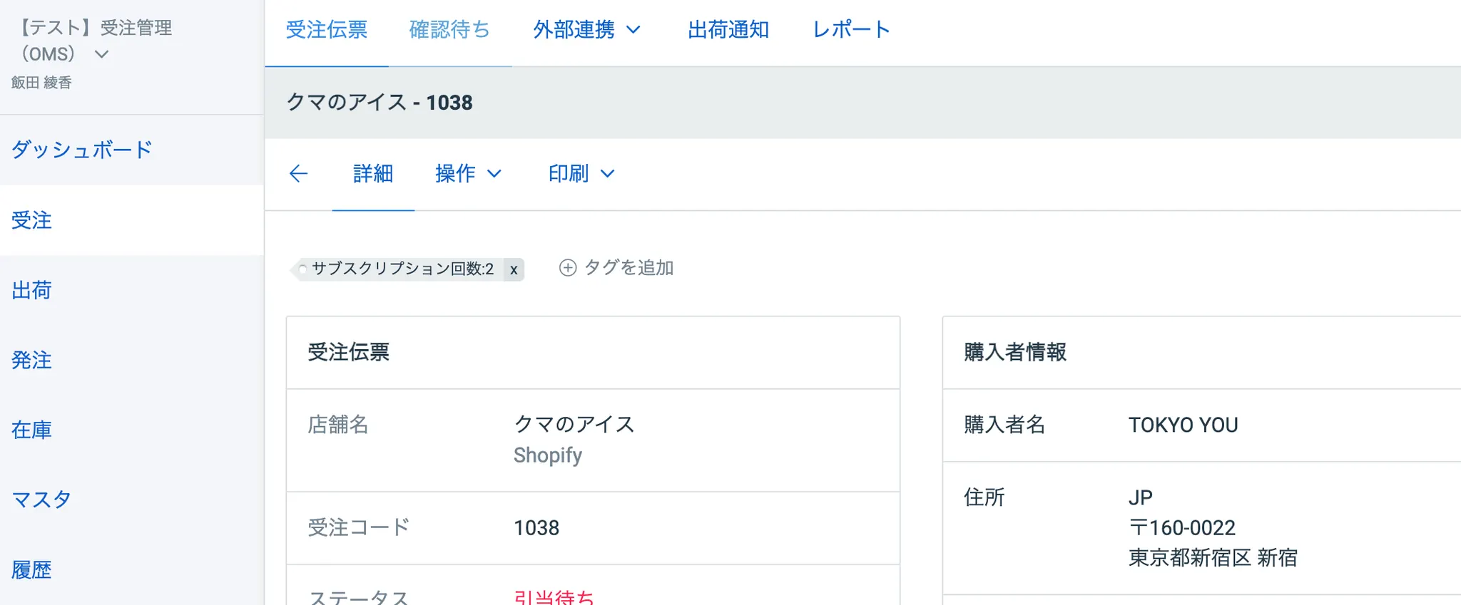 ▼受注に「サブスクリプション回数:●」というタグが設置されます。(下記画像参照)