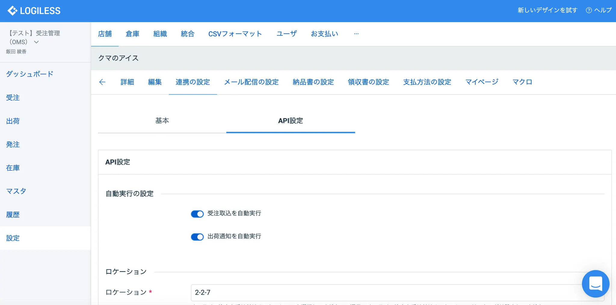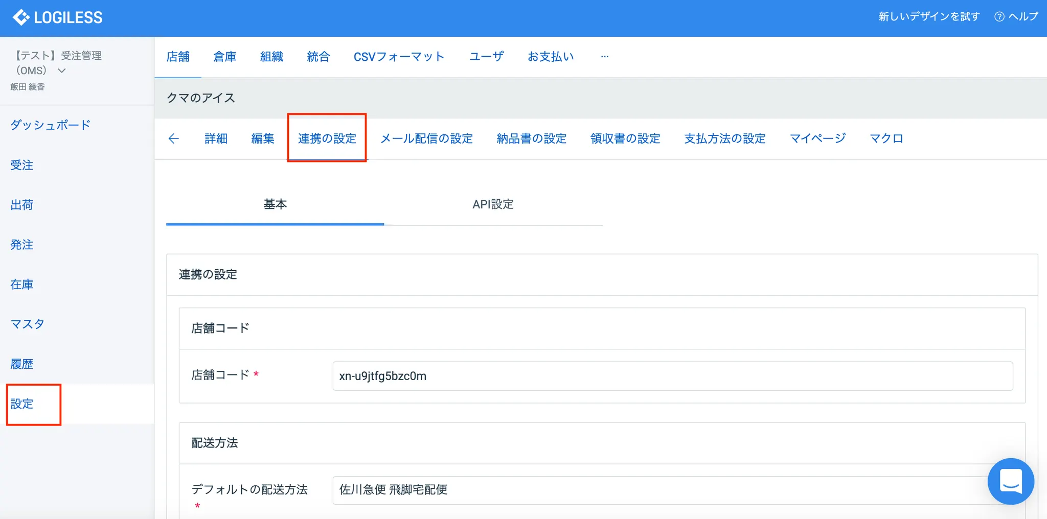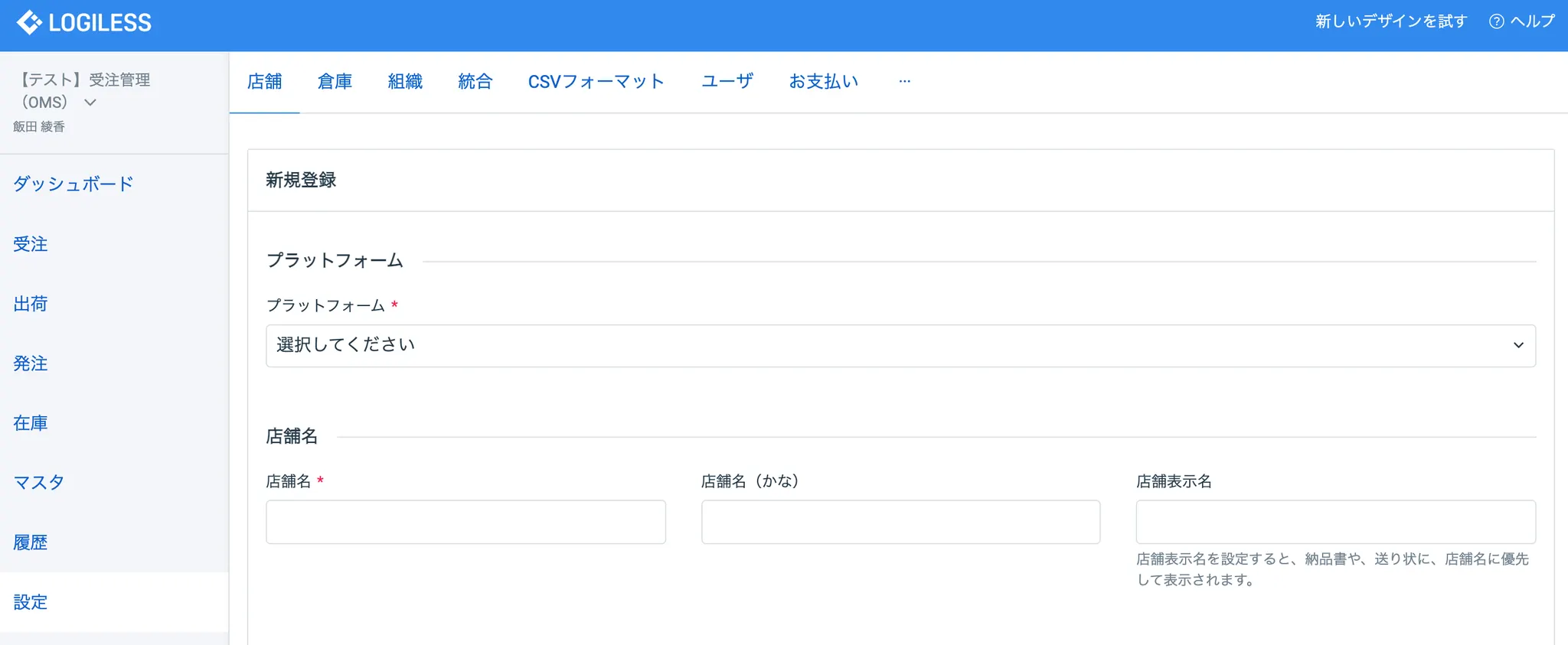●店舗の作成:LOGILESS上にShopify用の店舗を作成し、連携のための事前設定を行います。