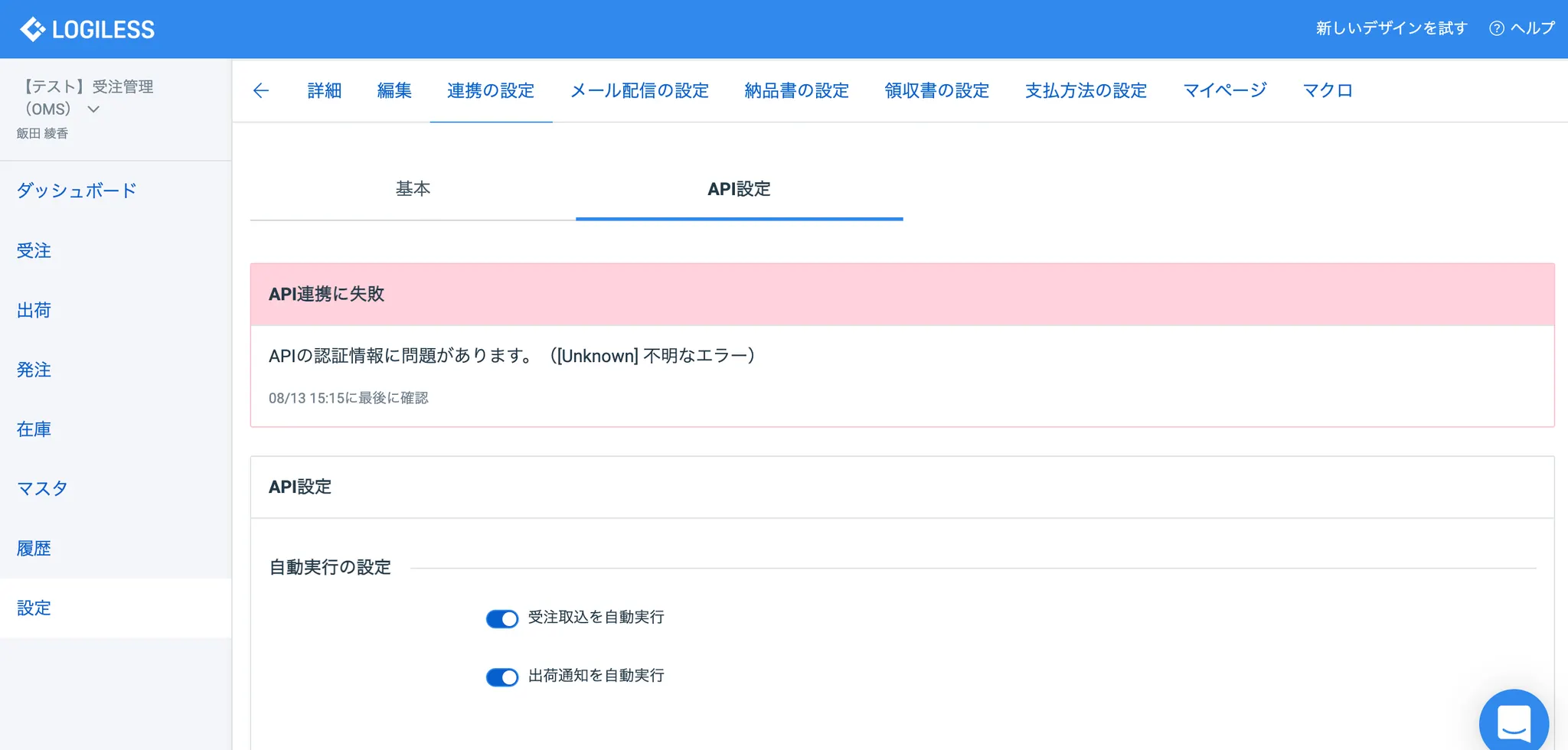 ⑧「受注取込を自動実行」と「出荷通知を自動実行」にチェックを入れます。