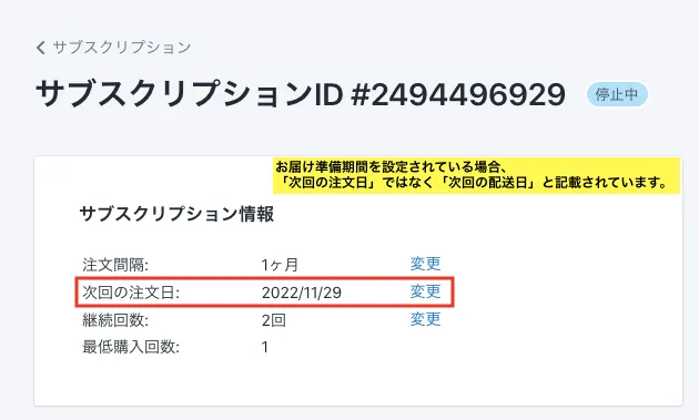 ※次回の注文日「2022/11/29」を迎えたら「2022/12/29」となります