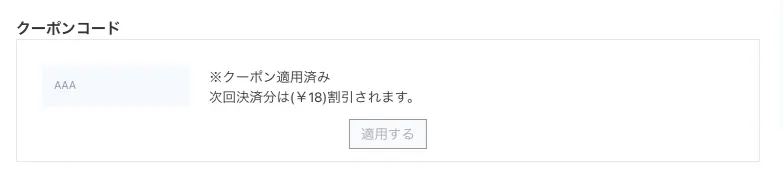 注文割引の設定でクーポンが利用された定期購入には、無料配送を新たに設定できない※割引が存在する場合、クーポンの入力欄と適応ボタンが非活性になります。