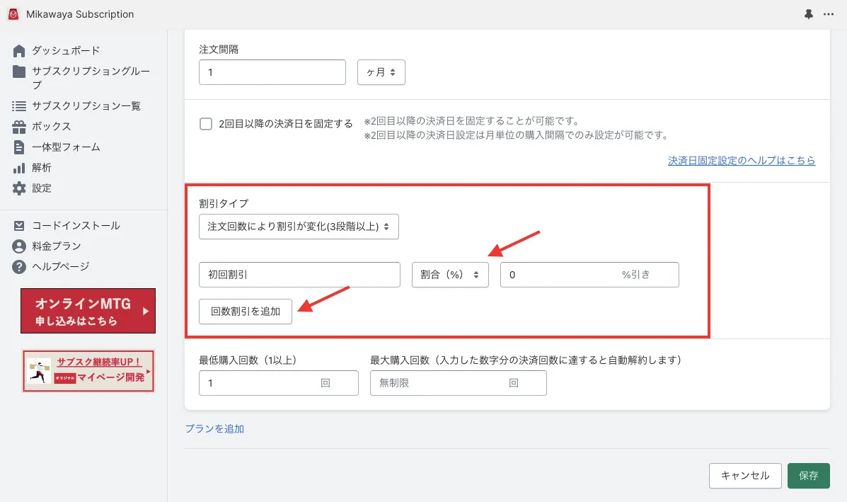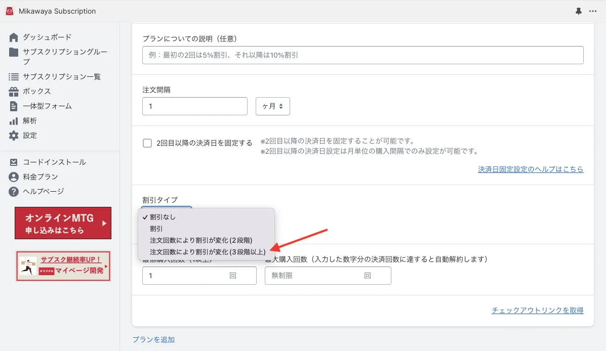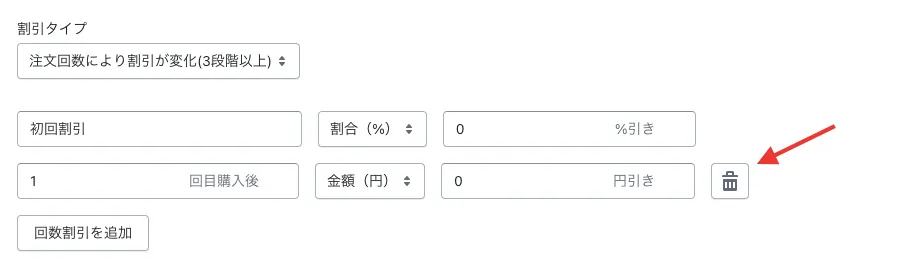 ②「注文回数により割引が変化(3段階以上)」をクリック