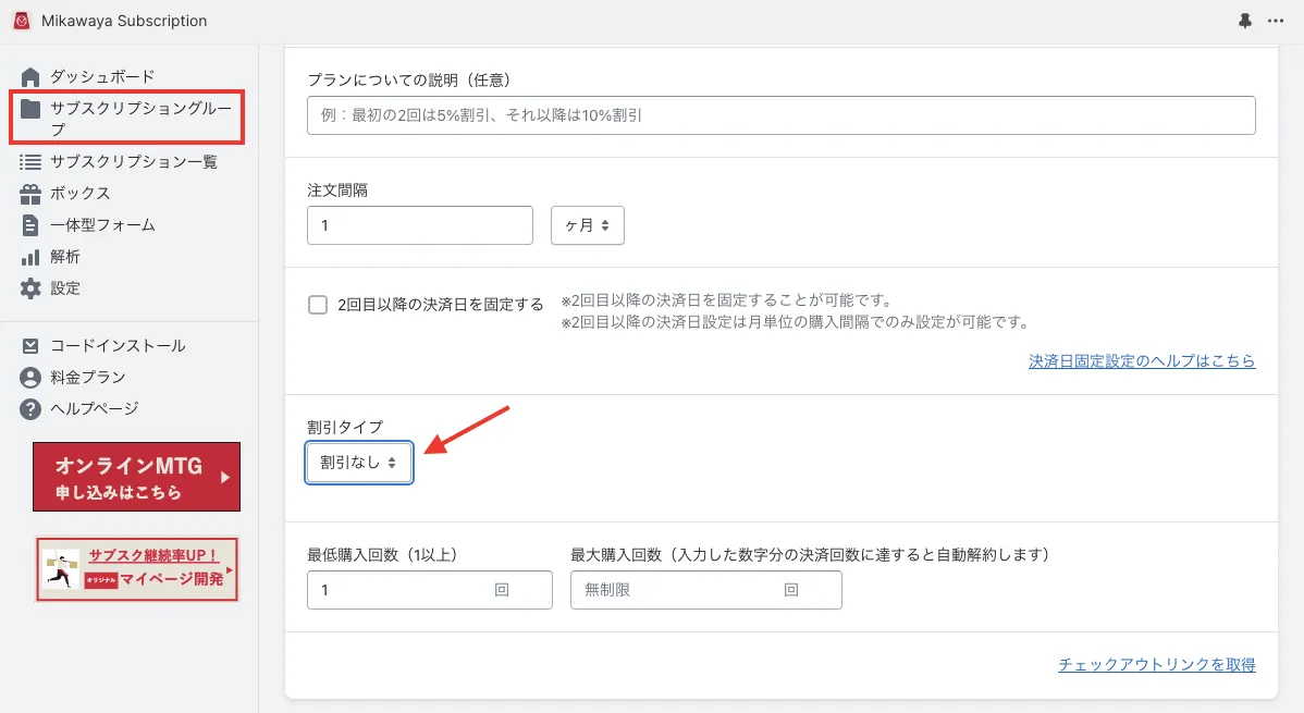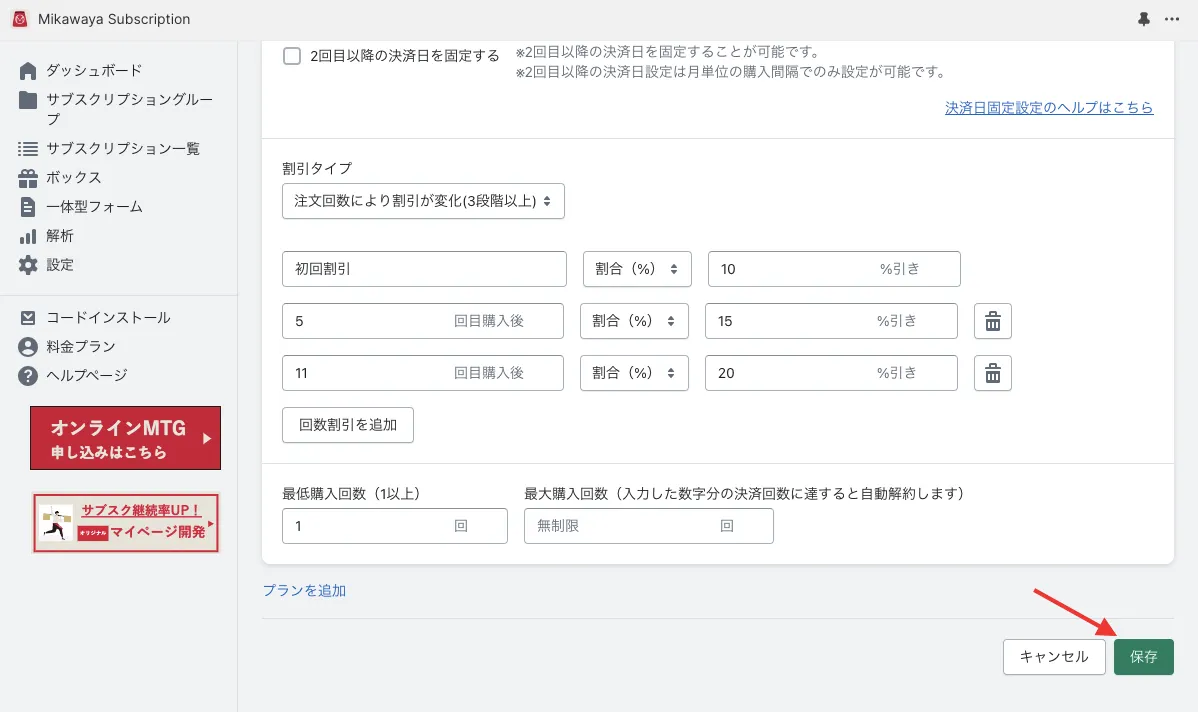 ※サブスクリプショングループ[最低購入回数]と組み合わせることも可能です