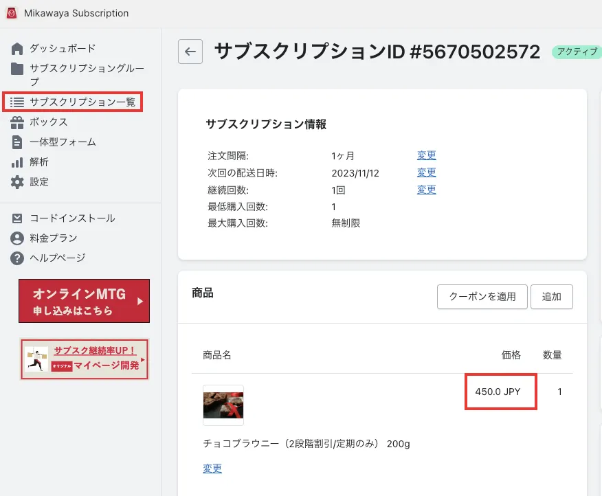 もし既存顧客にも適用させたい場合は新たに初回購入から決済を行っていただく必要があります