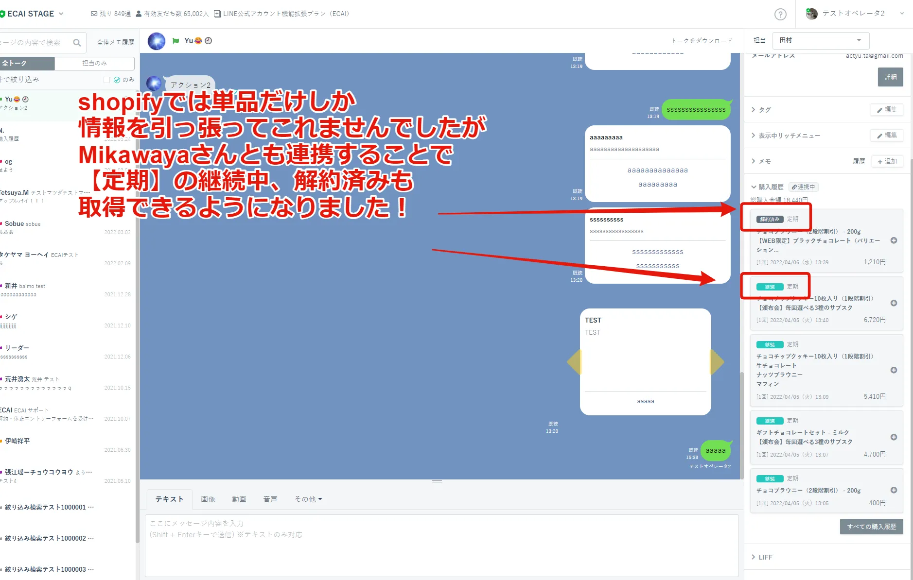 ・お客様がLINE上で定期便の購入履歴の確認が可能