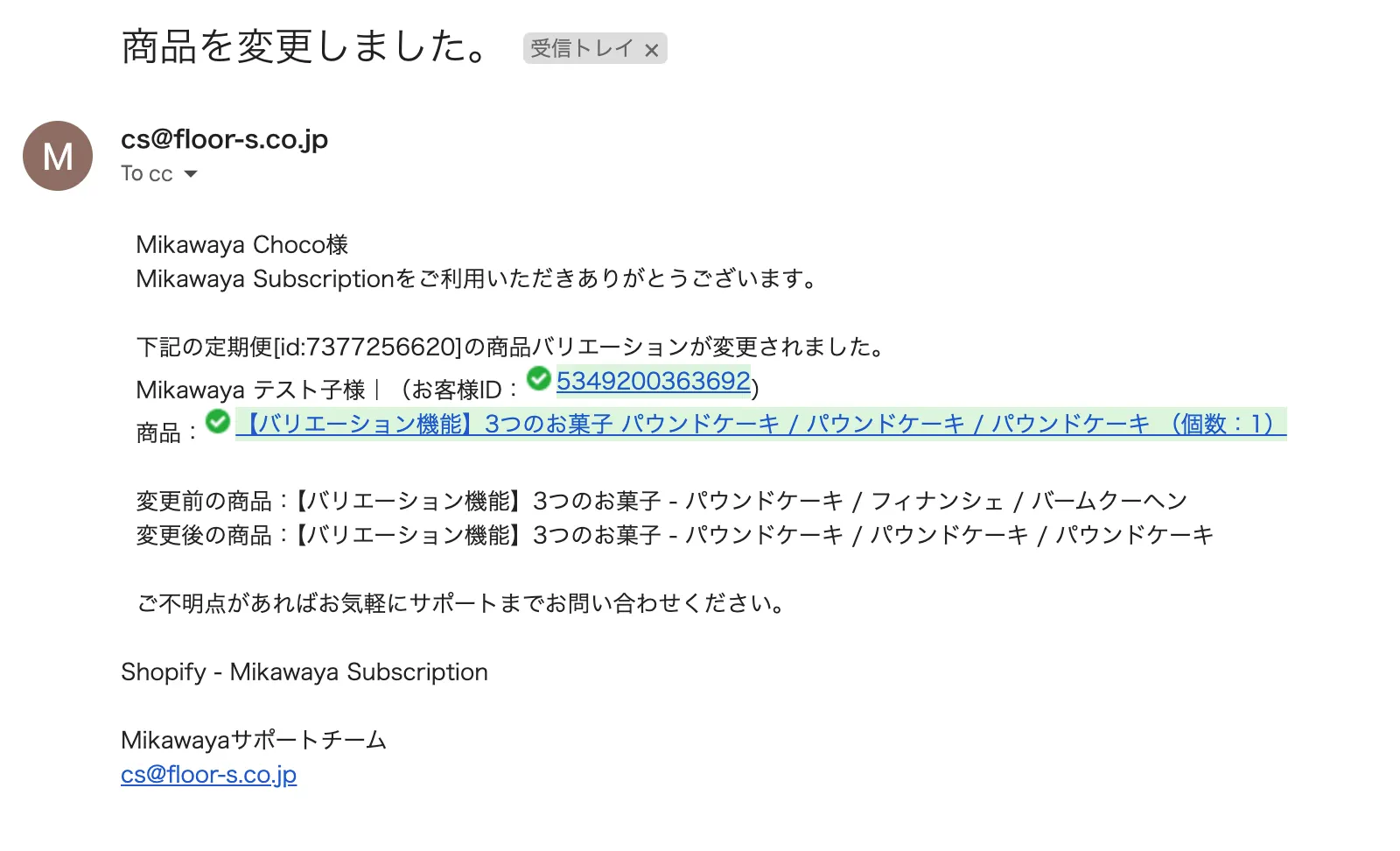 下記の定期便[Id:{subscriptionId}]の商品バリエーションが変更されました。