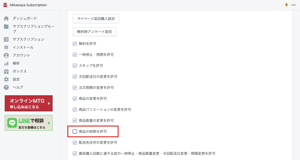 -マイページでお客様側から商品が削除できないように制御することが可能となりました