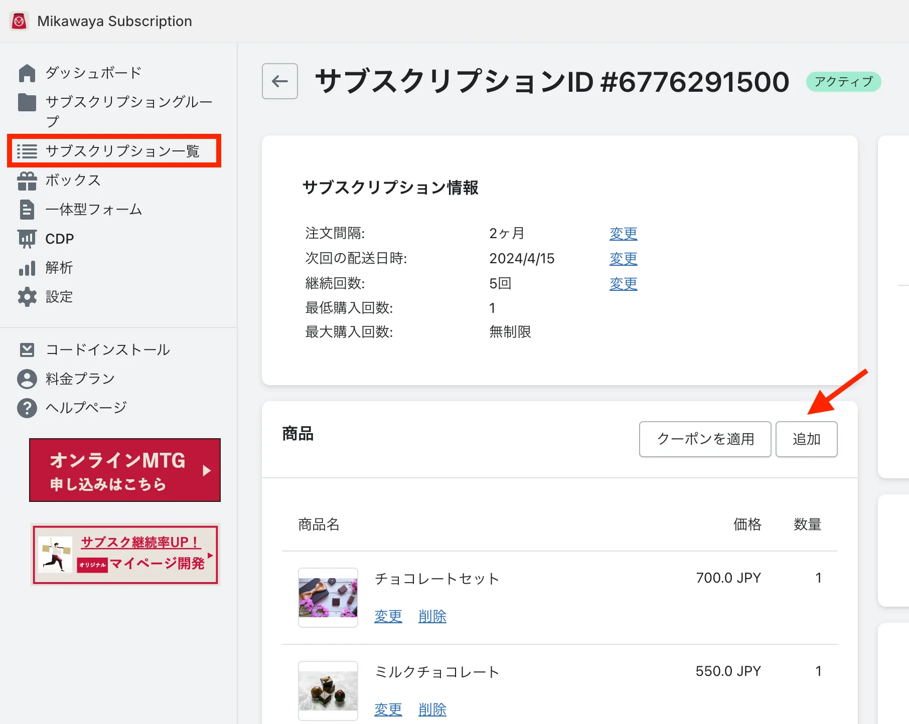 Mikawayaアプリ>サブスクリプション一覧にて対応が可能です。