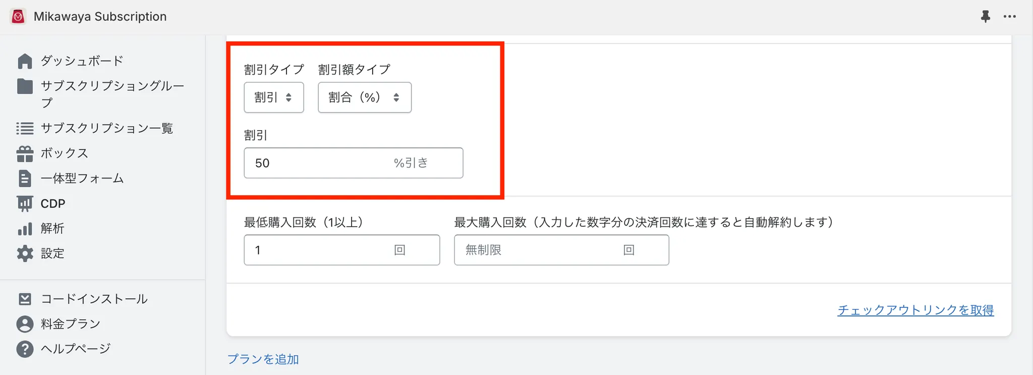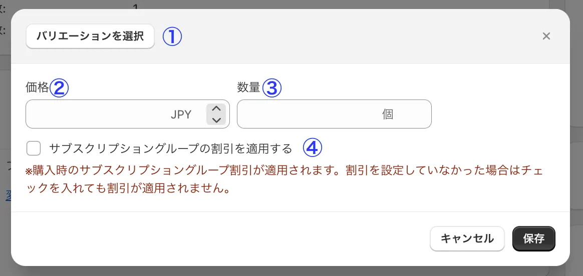 ④サブスクリプショングループの割引を適用する:②で設定した価格に対し割引を適用できます