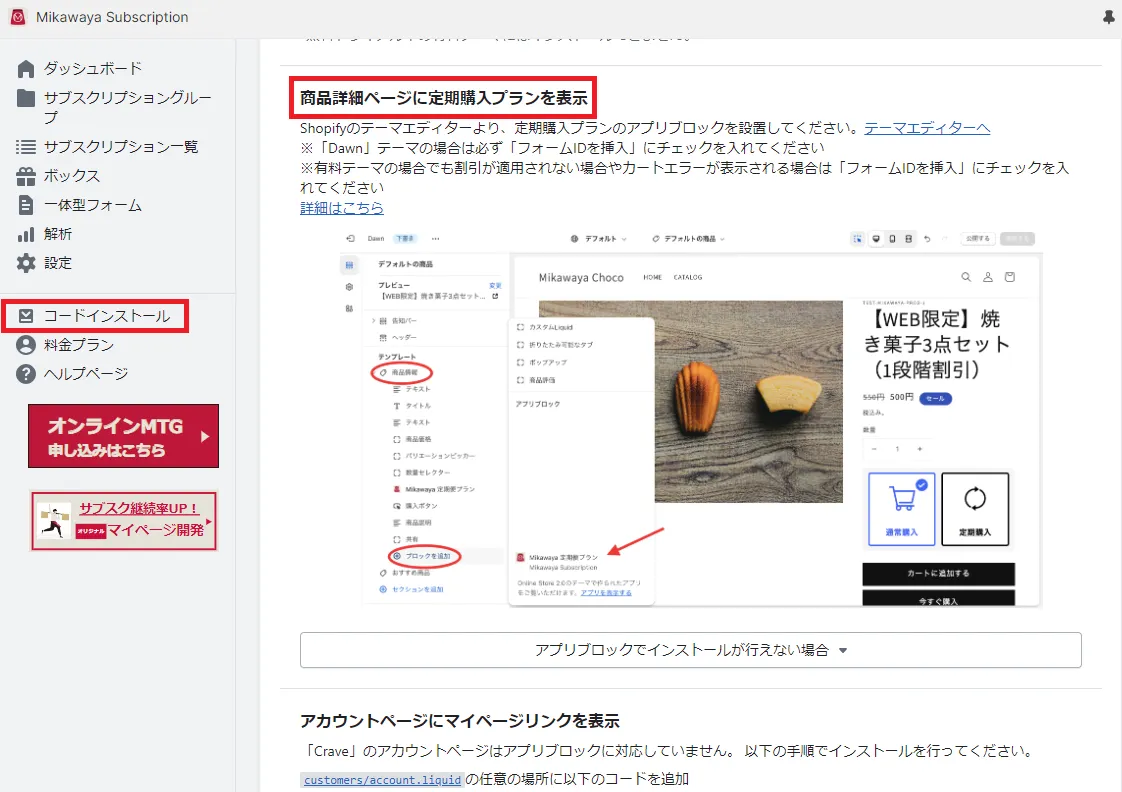 商品詳細ページに定期購入プランを表示の下記コードがファイル内に複数設置されていると、通常の購入となってしまう可能性がございます。