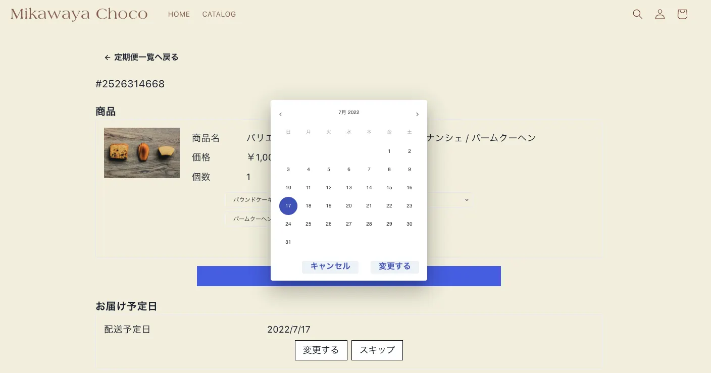 お届け準備期間を設定すると、お客様マイページで次回配送日が選べるようになります!