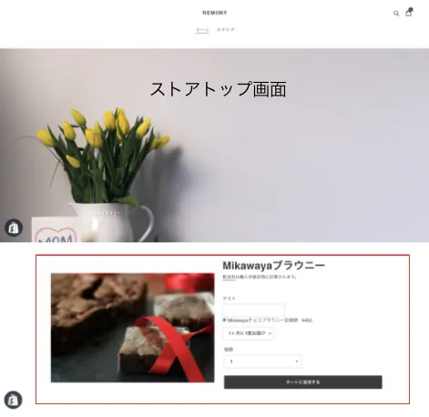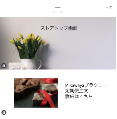 そのため、サブスク注文の購入導線として「ストアトップで〈定期便はこちら〉のようなバナーなどを設置する」→「サブスク商品ページに誘導する」という方法をオススメしております。