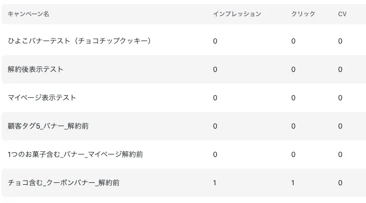 バナーの表示回数(インプレッション)、クリック数を計測します。