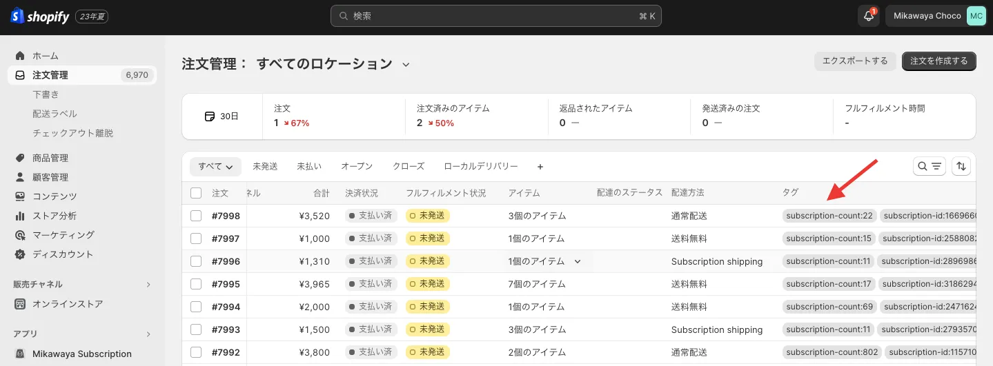 そのため、各注文に付与された注文回数のタグを身ながら1回目の注文にはA商品を発送し、2回目の注文にはB商品を発送するといった配送を行うことが可能です。