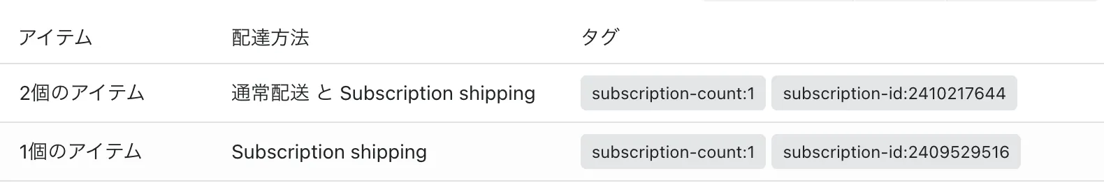 通常配送とSubscriptionではShipping Methodはまとめて表示されます。