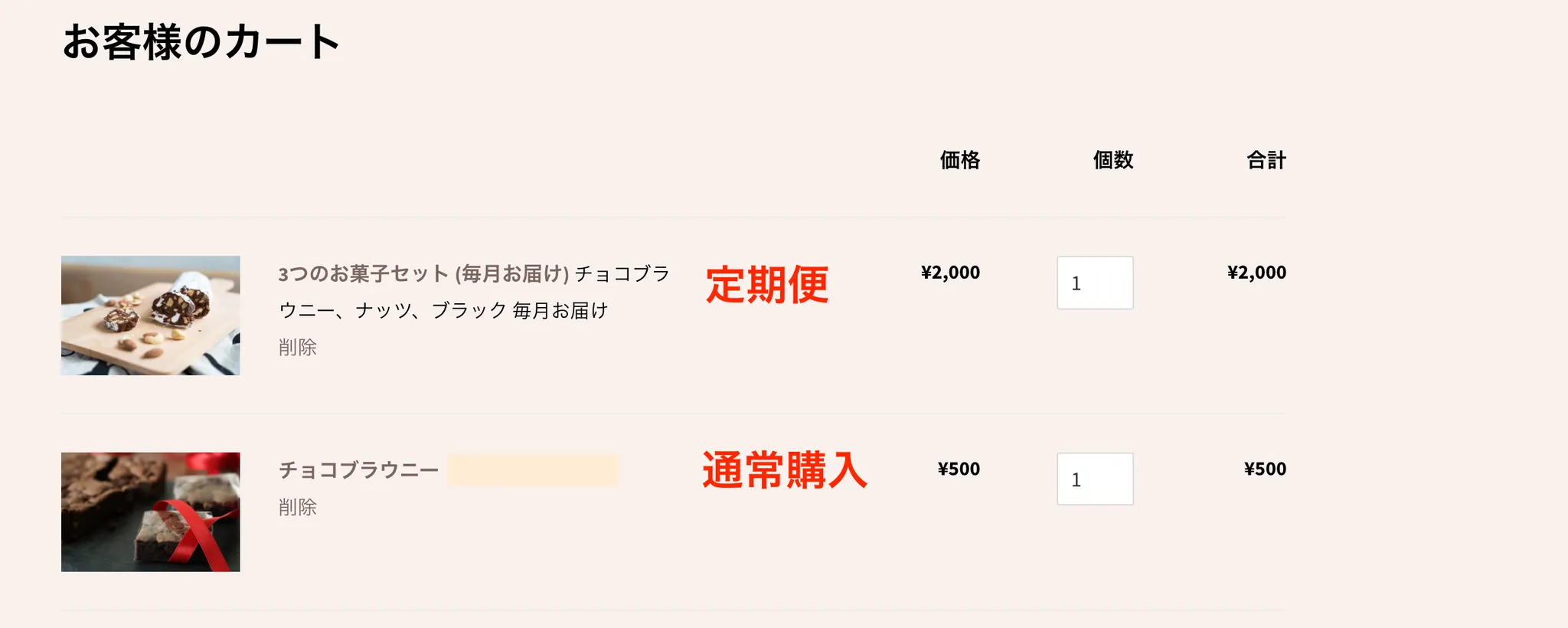 通常購入商品と定期便をカートに一緒に入れて購入した場合どうなるのかについて説明します。