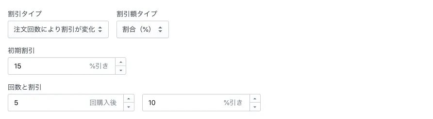 3段階割引を設定することで初回50%OFF、2回目〜4回目20OFF、5回目以降10%OFFといった販売価格を設定し、サブスクリプション購入のハードルを下げることも可能となります。