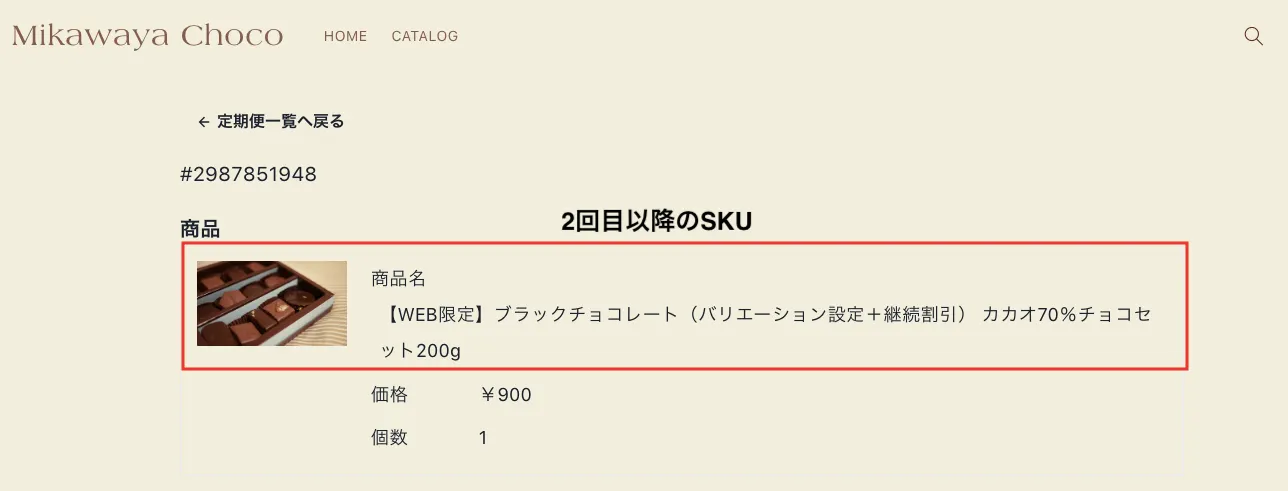 定期便2回目以降の商品SKUに自動で切り替わります。