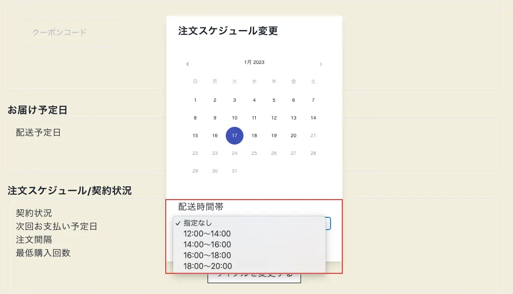 -サブスクリプションマイページ上で、定期便2回目以降の「配送時間帯」を選択できるようになりました。