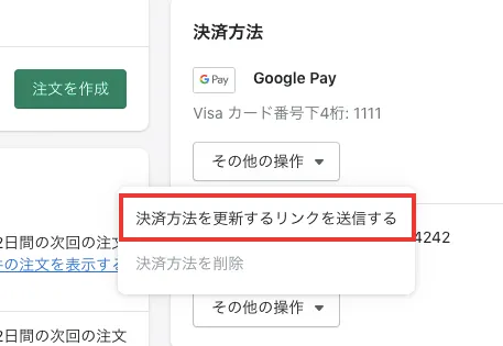 ①Shopifyの「顧客管理」で決済方法の変更メールを送信