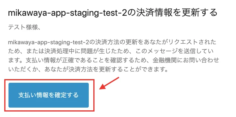 届いたメールの「支払い情報を確定する」をクリックすることでクレカ情報の変更が可能となります。