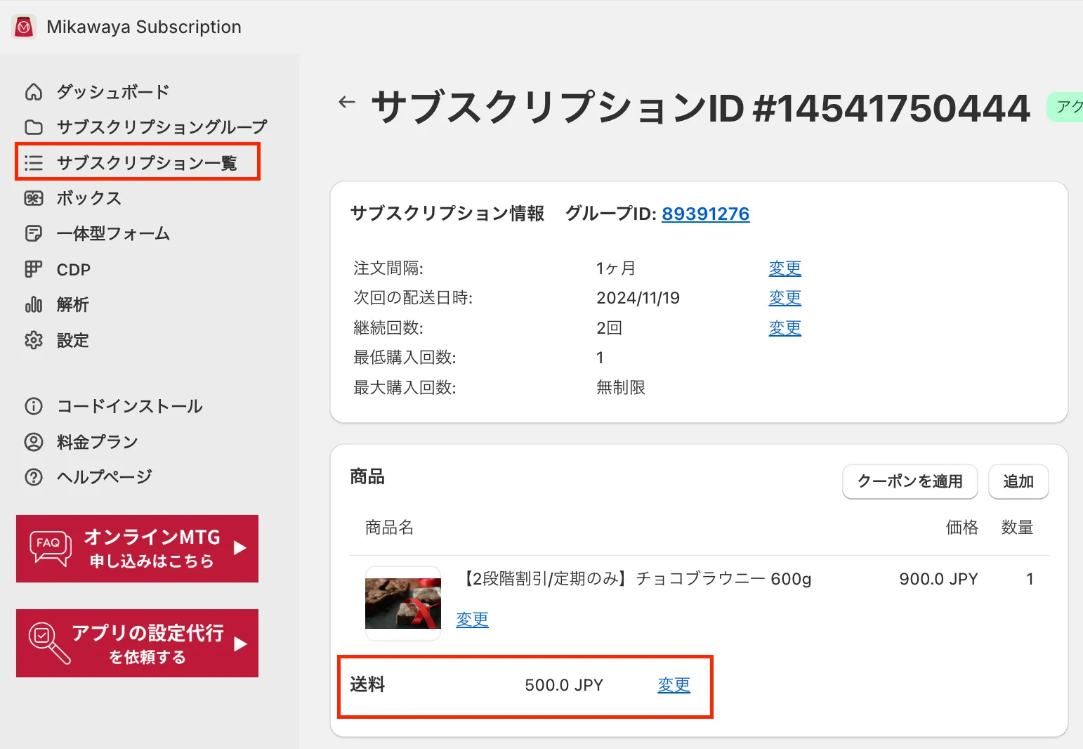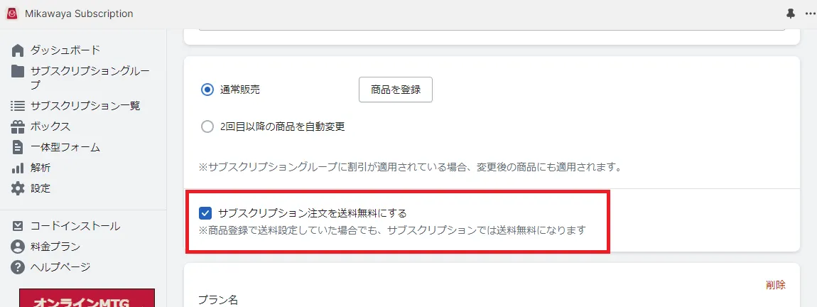 1.サブスクの送料無料機能について(Mikawaya機能)