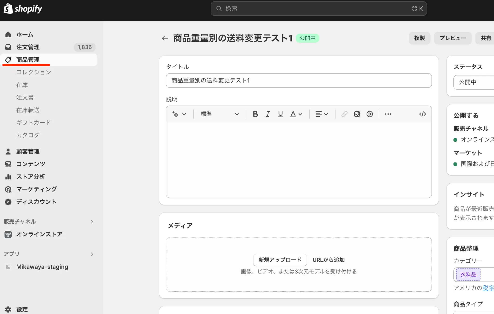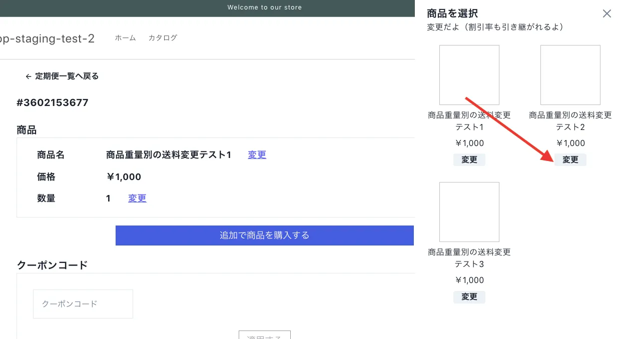 Shopifyの仕様上、サブスク注文している商品を変更しても初回購入時の送料金額は変わらない仕様となっています。