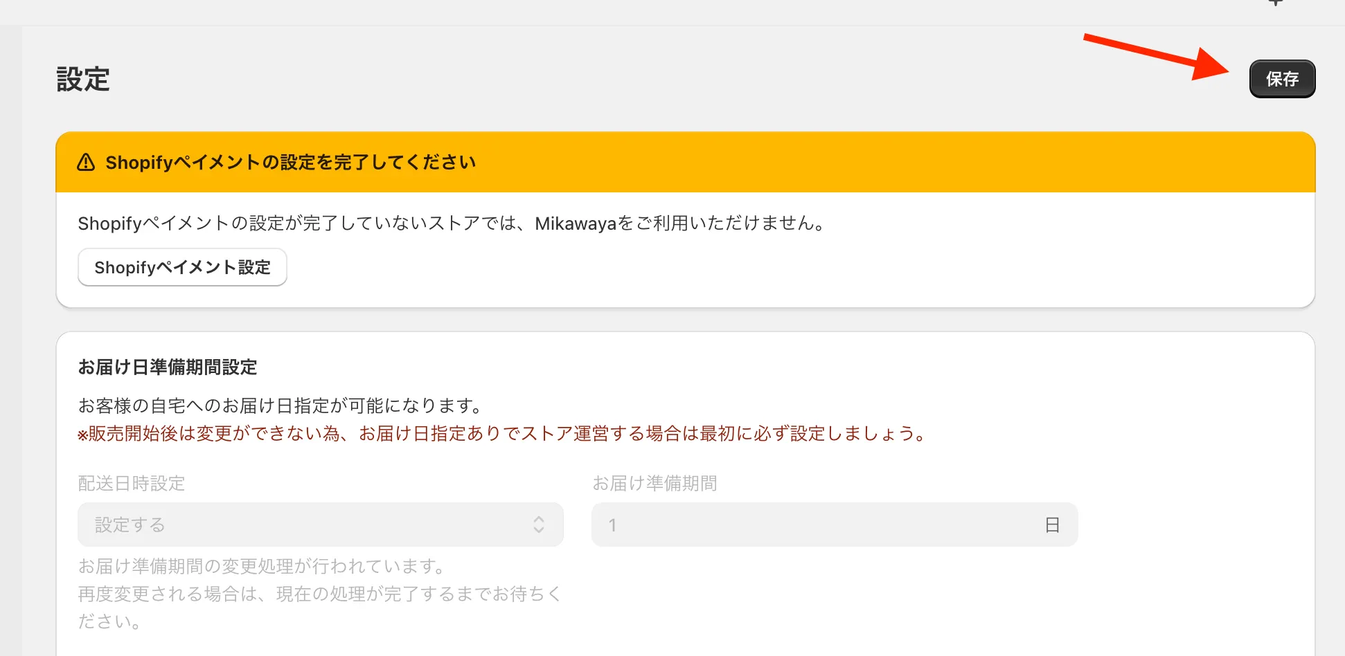3、「設定」画面の一番上の保存ボタンをクリックして完了