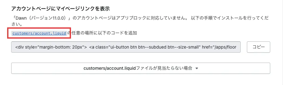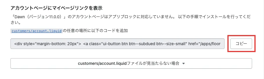Shopifyマイページ上にサブスクリプションマイページの導線を設定するものです。