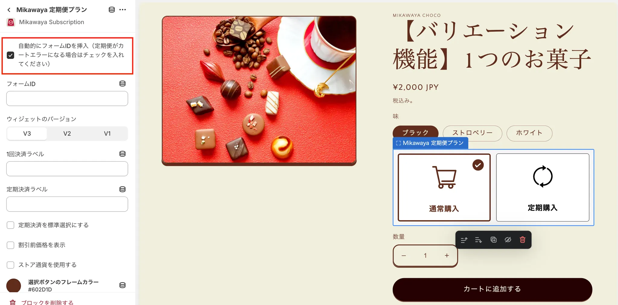 Mikawaya 定期便プラン内にある「自動的にフォームIDを挿入」に✓をいれてから保存してください。
