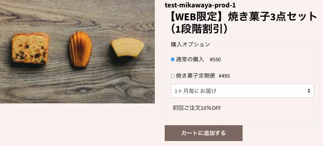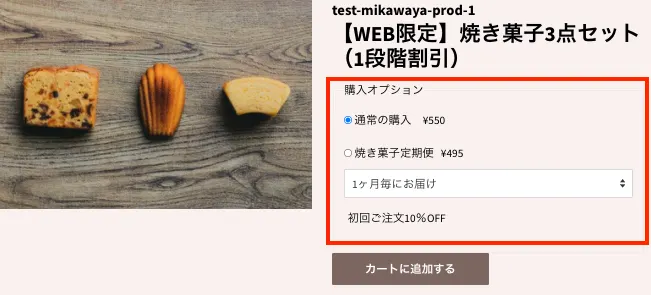 ・ワンタイム購入(通常単品購入)とサブスクリプション購入の選択