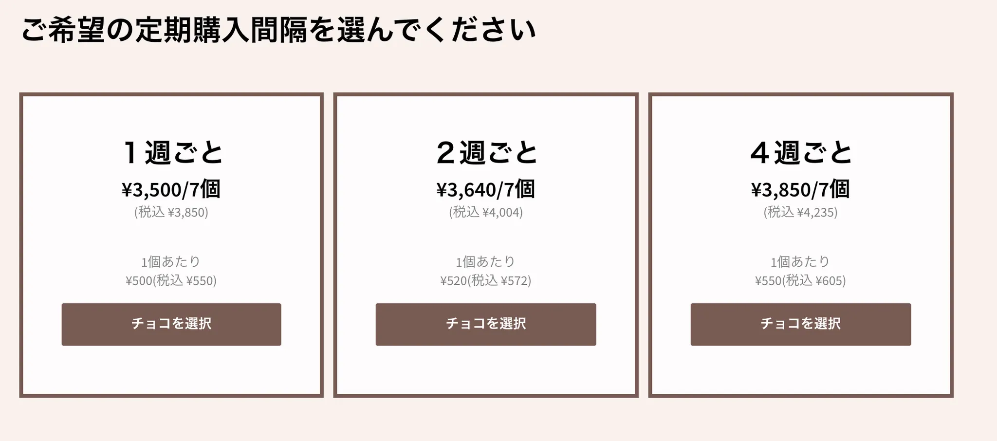 ・設定したサブスクリプショングループとボックスを紐付ける為、割引率や注文間隔はグループの設定に基づいた設定ができます。