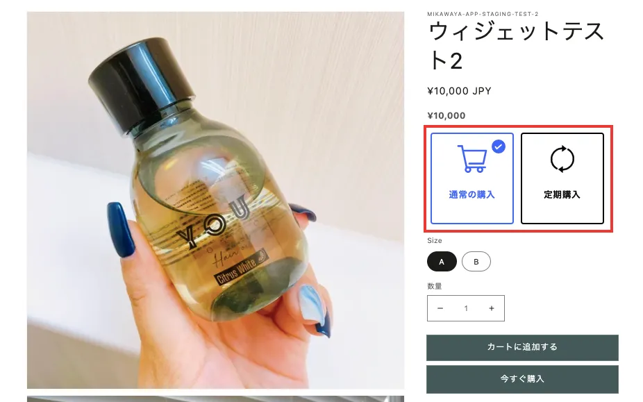 ワンタイム購入(通常単品購入)とサブスクリプション購入の選択