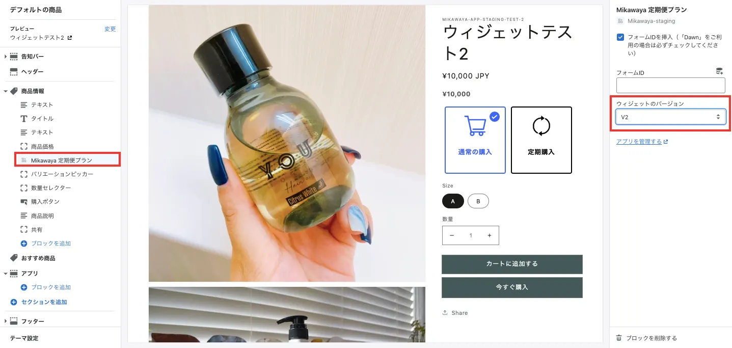 Mikawayaアプリでは商品選択ページにワンタイム購入とサブスクリプション購入から選んで購入することができます