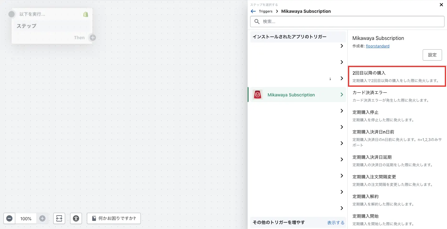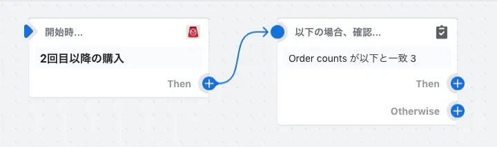 MikawayaのShopifyFlowトリガーで、定期便継続回数○回目の顧客をトリガー条件で設定します。