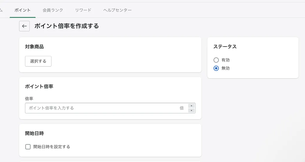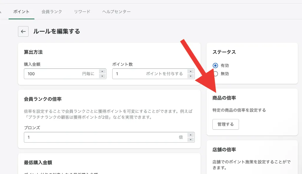 管理するを押した後のページで、特定の商品だけポイント倍率を上げる事ができるので、定期商品だけポイント5倍なども可能です。