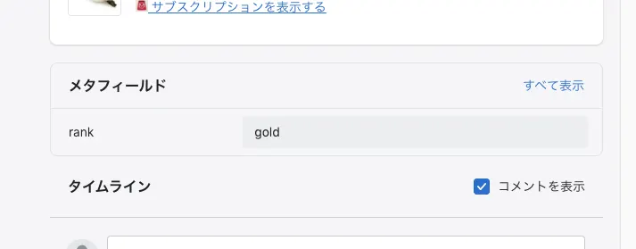 VIPアプリで会員ランク情報を設定すると、Shopify顧客管理にメタフィールドが自動で付与されます。
