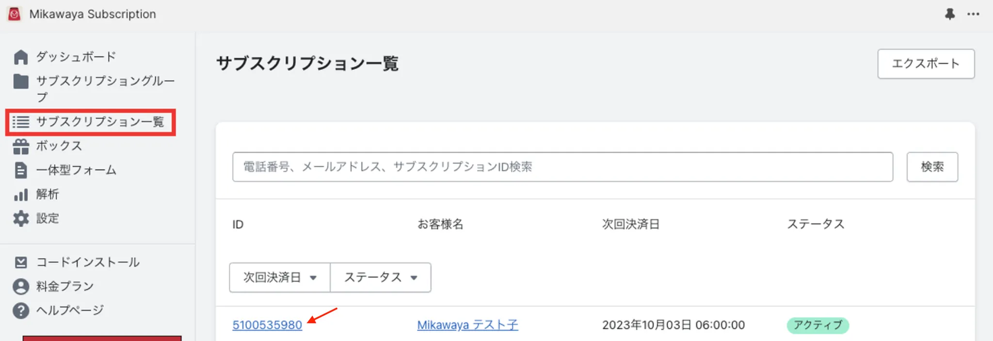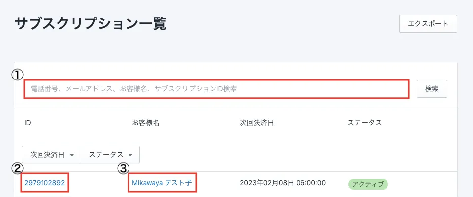 ①電話番号・メールアドレス・サブスクリプションIDで検索することができます。